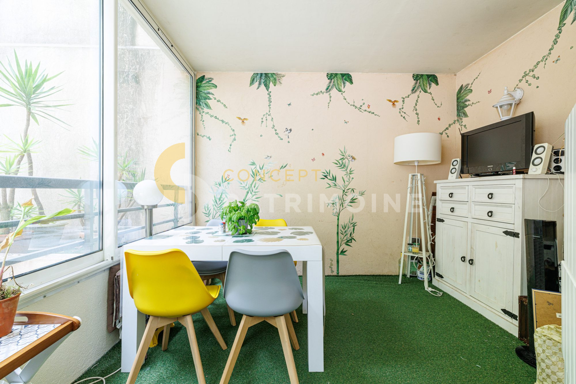 Cet appartement climatisé se compose d'un grand séjour salle à manger donnant accès à une profonde terrasse de 11 m² exposée sud-ouest avec vue dégagée sur les jardins de la copropriété, d'une cuisine équipée et aménagée très fonctionnelle donnant accès à une loggia fermée / seconde salle à manger. Deux chambres au calme avec placard et, pour votre plus grand confort, cet appartement dispose d'une salle d'eau avec WC, d'une salle de bain et d'un WC indépendant.