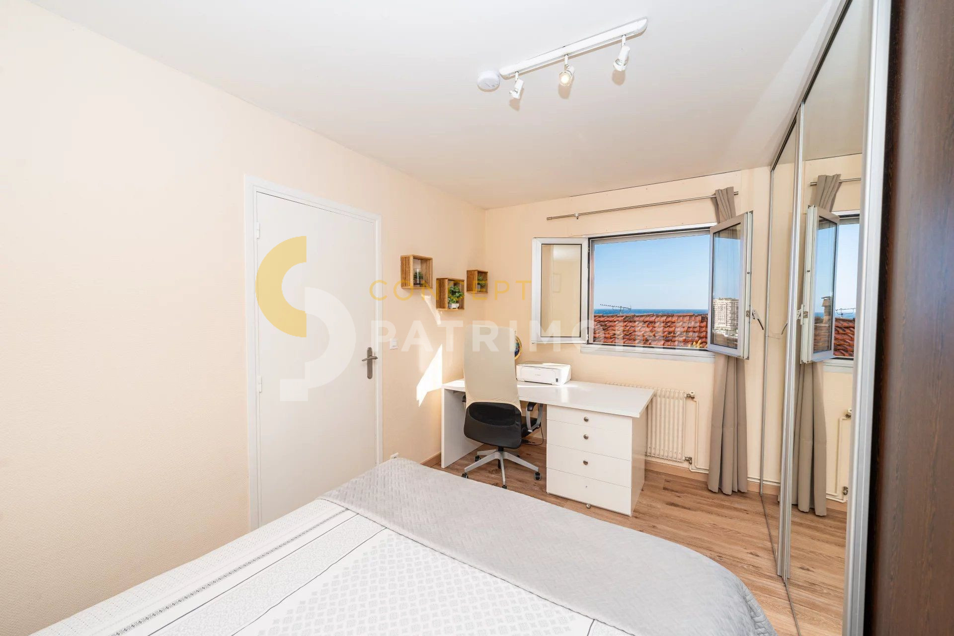 L’appartement se compose d’une cuisine indépendante, d’un séjour exposé mer, d’une chambre principale avec dressing et salle de bains, d’une seconde chambre, d’une salle de douche et de WC indépendants; terrasse d'environ 30m².