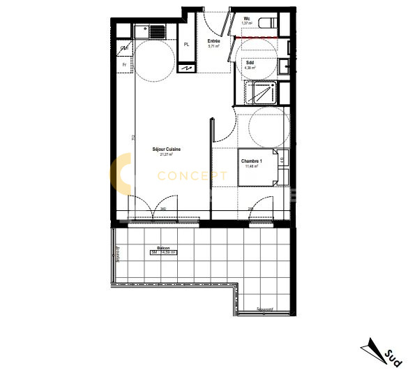 - Loi Carrez : 44,21 m2