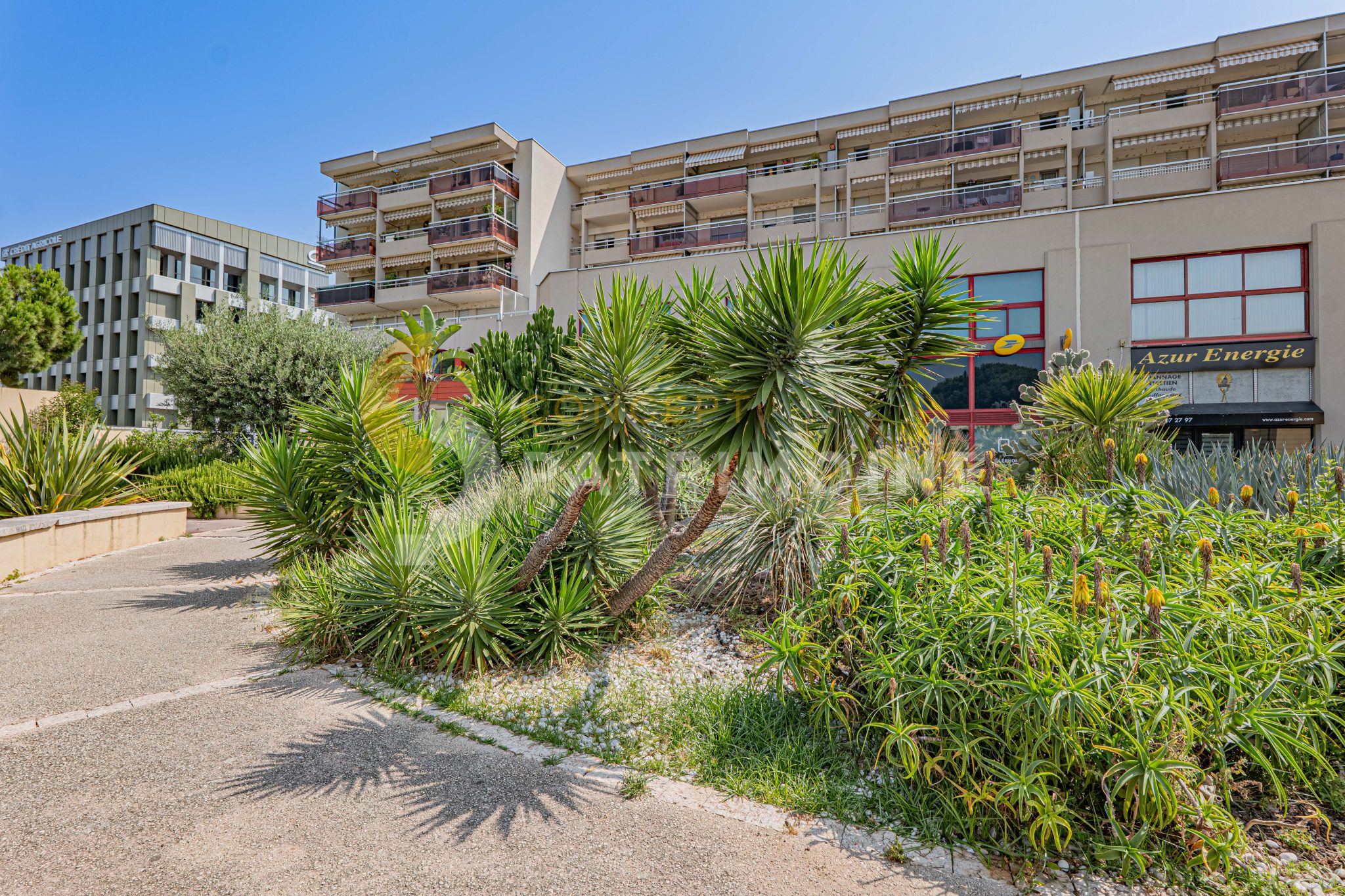 L’immeuble bénéficie d’un emplacement particulièrement stratégique : à seulement 1 minute de l’autoroute A8, à 10 minutes de l’aéroport Nice Côte d’Azur, et à 7 minutes à pied de la gare TER. Plusieurs lignes de bus desservent également le secteur. L’environnement est dynamique et attractif, avec de nombreux commerces, restaurants et hôtels à proximité.
