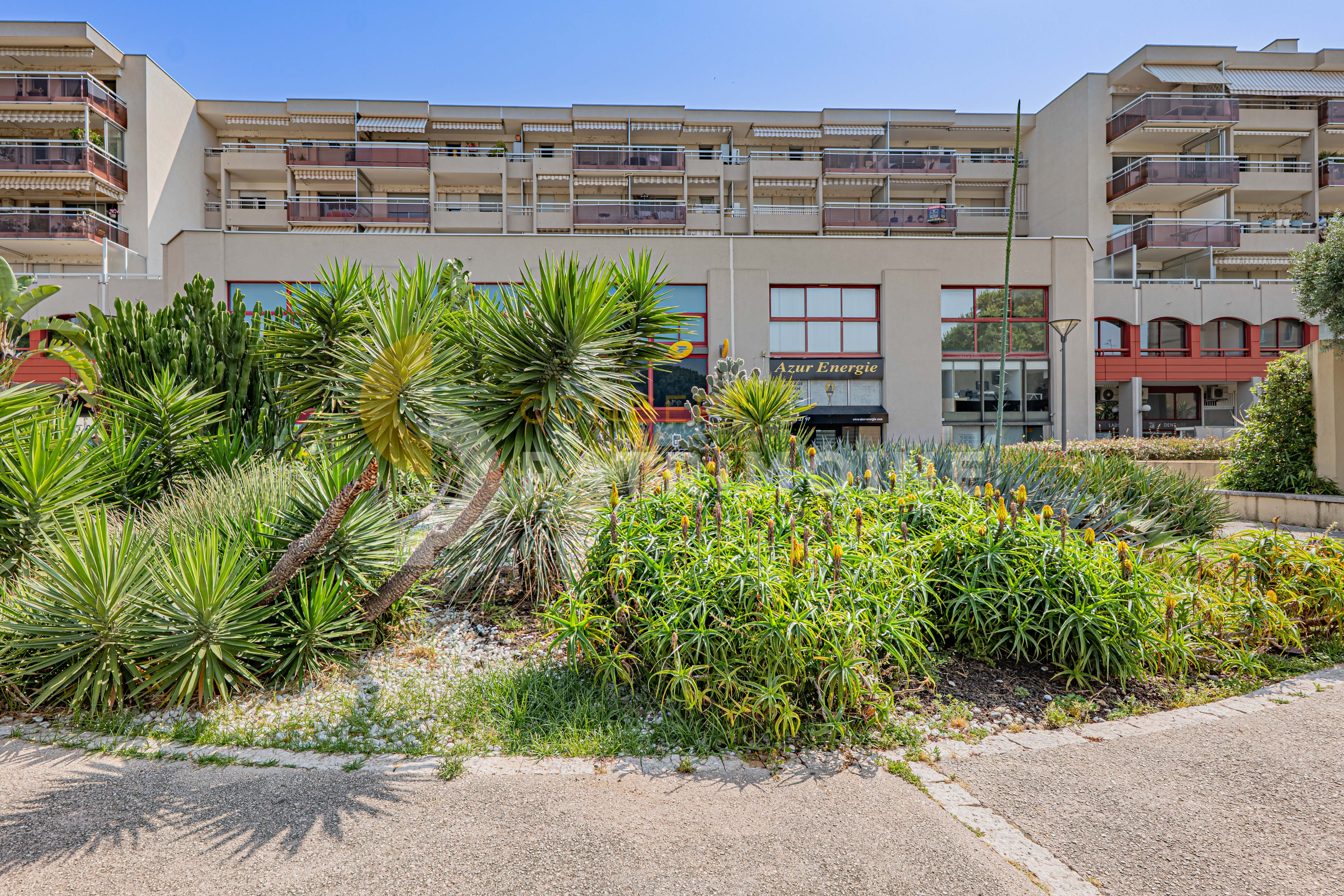 L’immeuble bénéficie d’un emplacement particulièrement stratégique : à seulement 1 minute de l’autoroute A8, à 10 minutes de l’aéroport Nice Côte d’Azur et à 7 minutes à pied de la gare TER. Plusieurs lignes de bus desservent également le secteur. L’environnement est dynamique et attractif, avec de nombreux commerces, restaurants et hôtels à proximité.