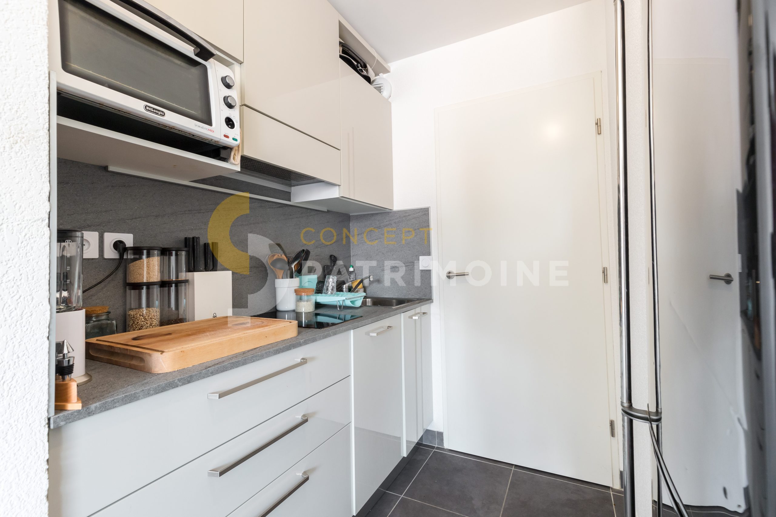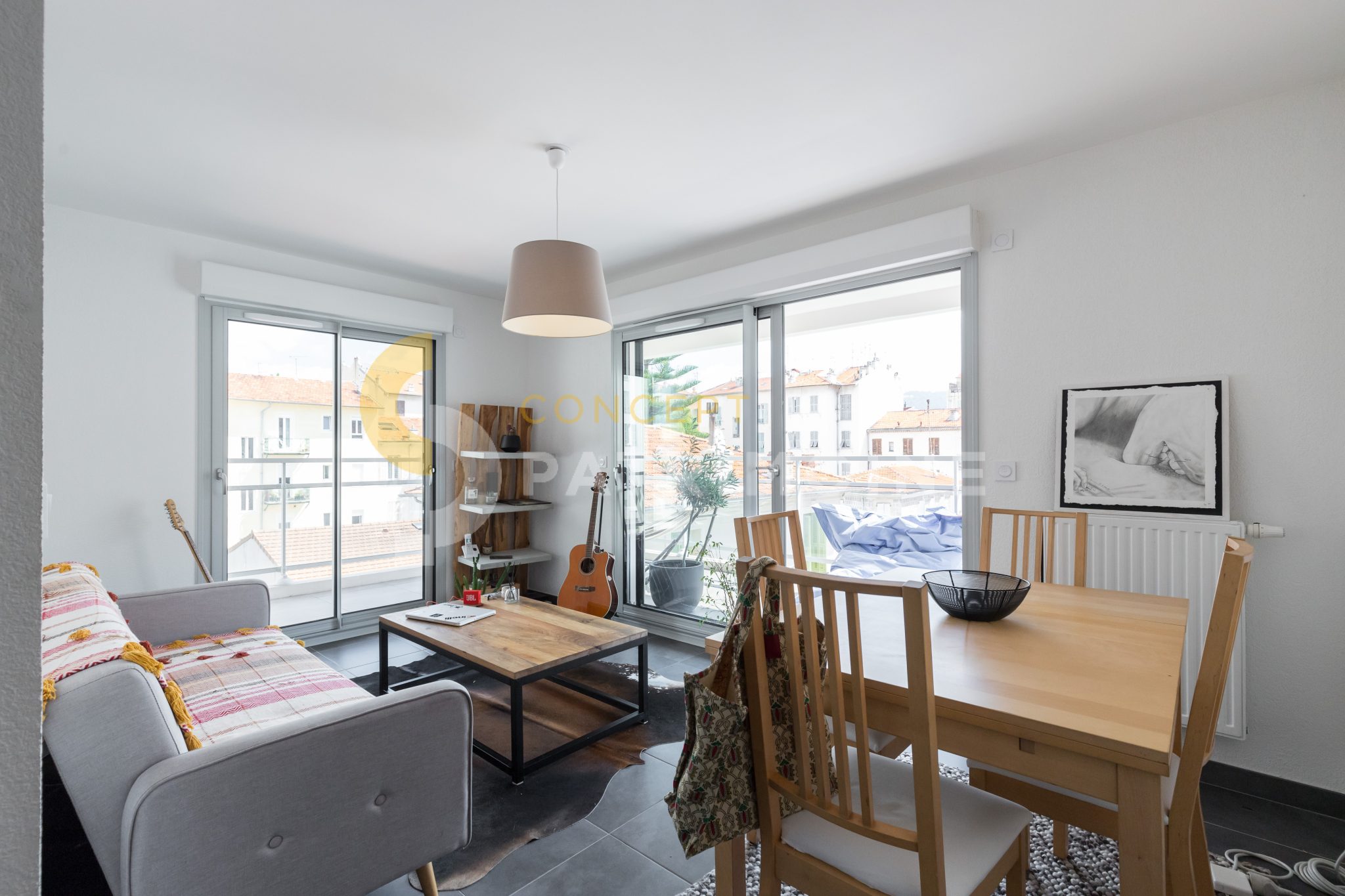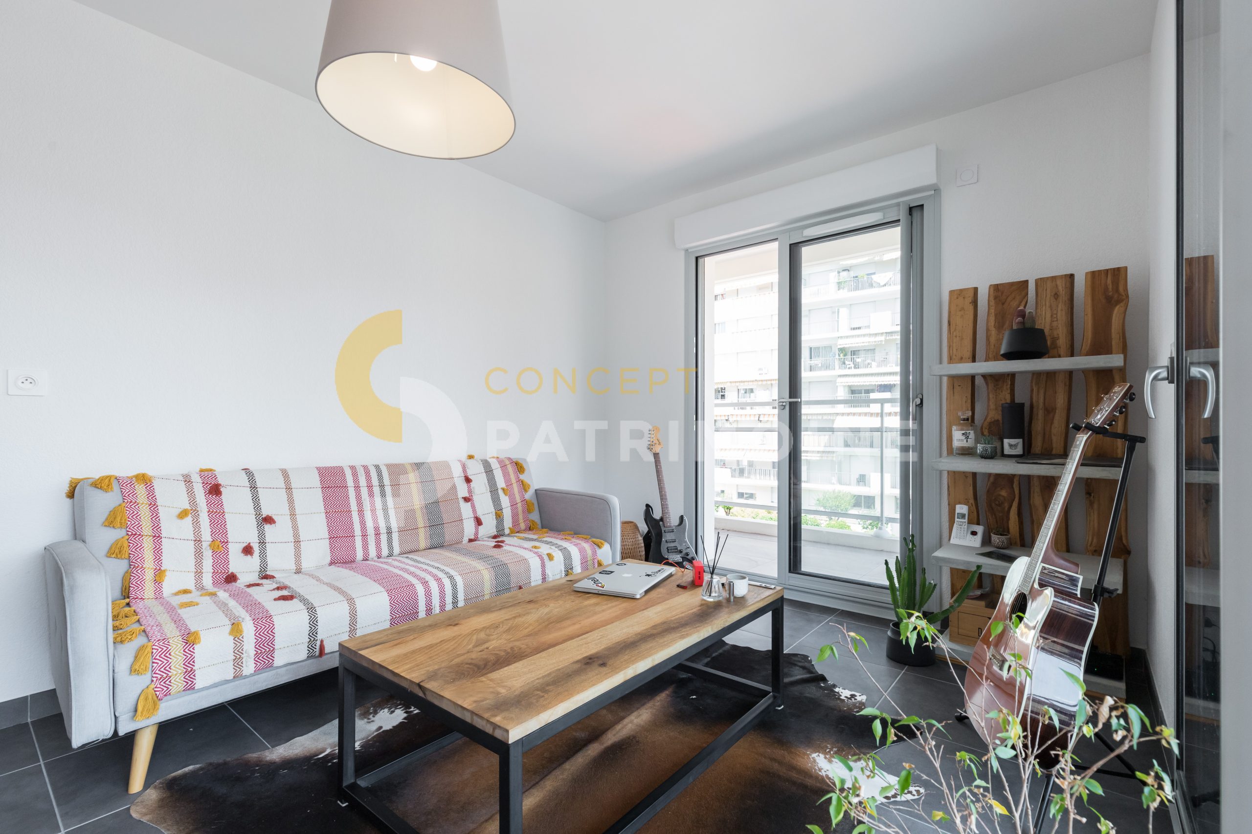Il se compose d’un hall d’entrée, d’une salle de douche moderne avec WC, meuble vasque et douche, d’une chambre avec placard et baie vitrée, ainsi que d’un séjour lumineux avec cuisine ouverte, bénéficiant de deux grandes baies vitrées.