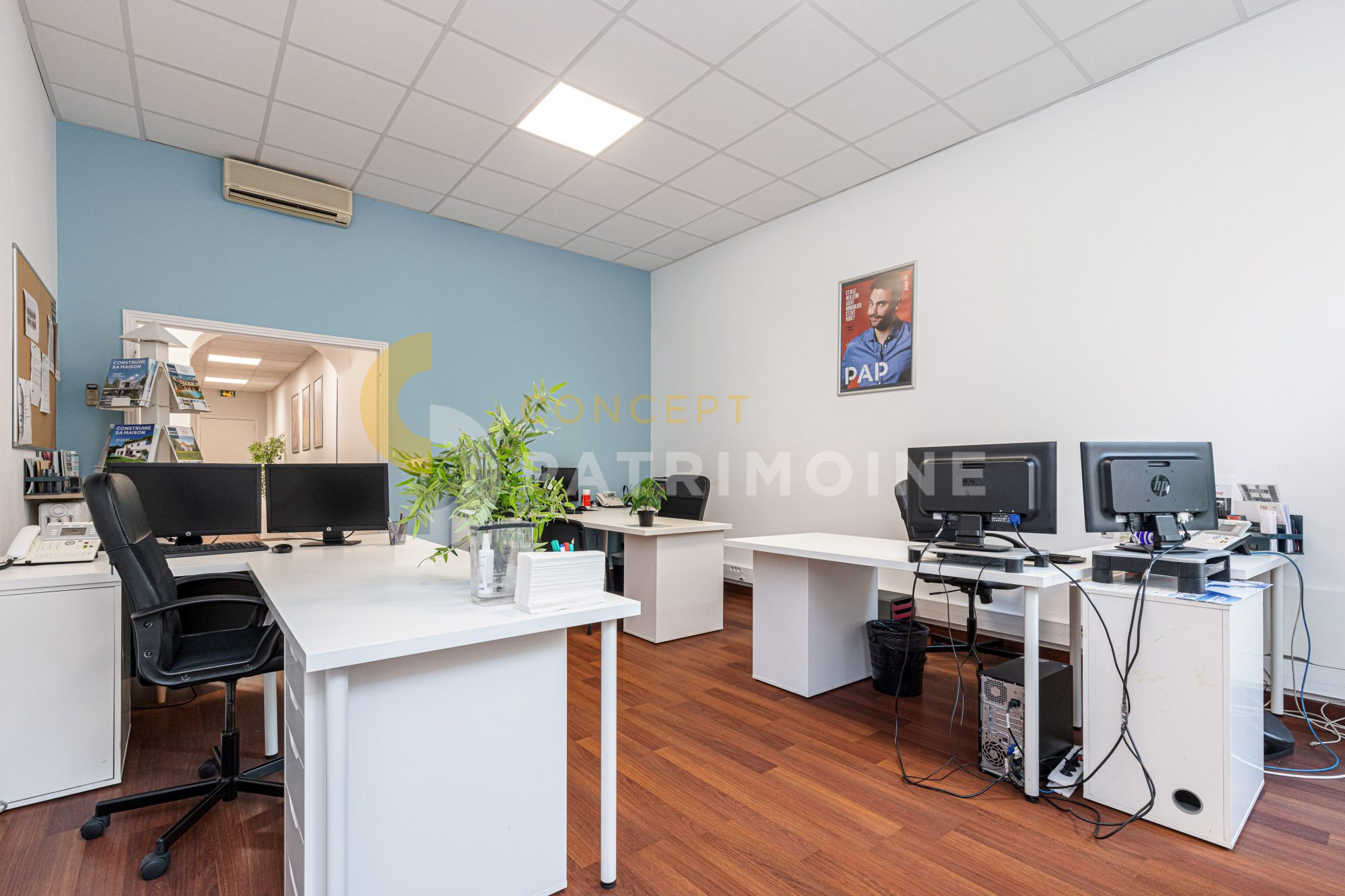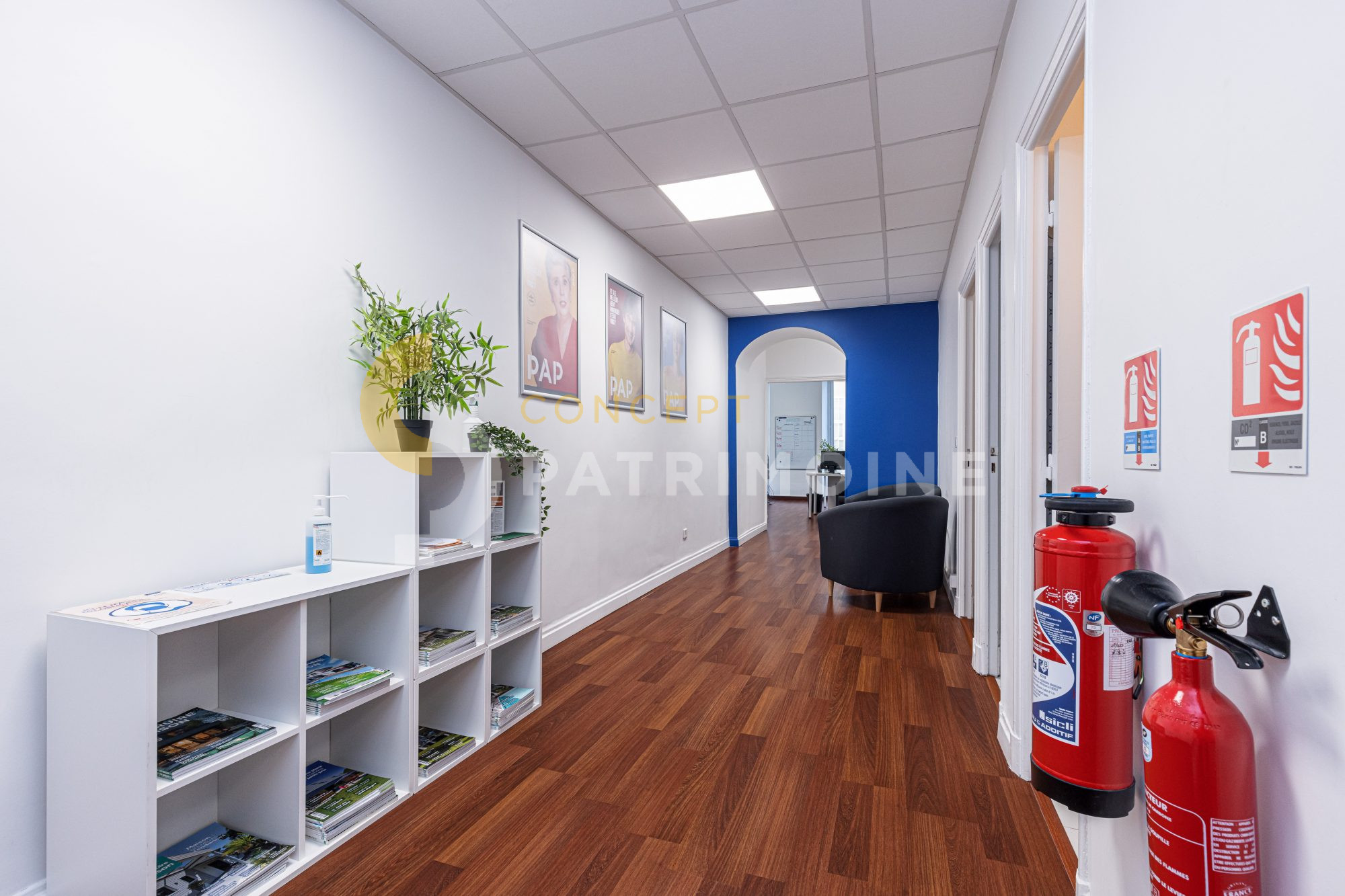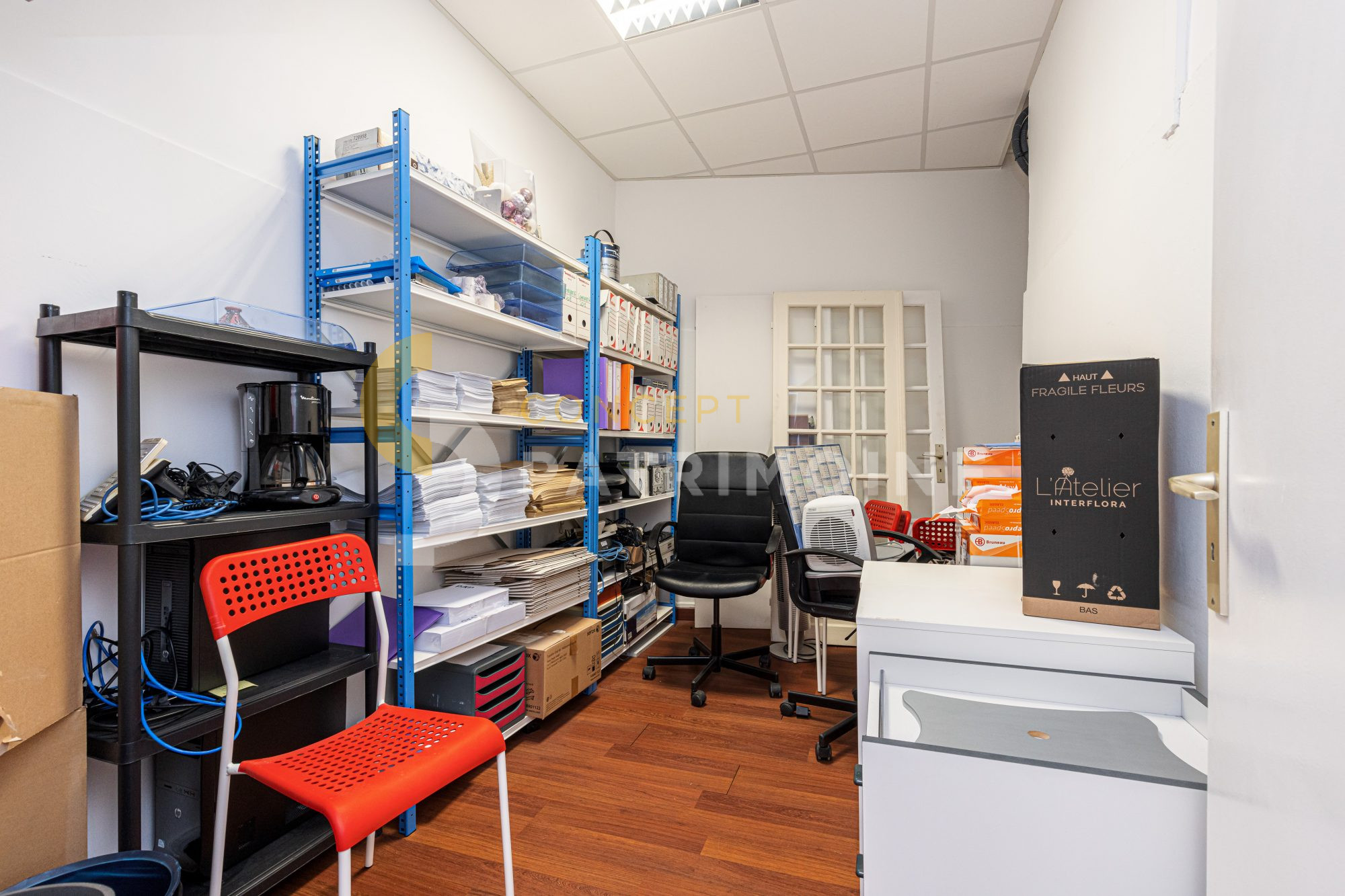 Le bien se compose de quatre bureaux distincts, permettant une organisation optimale pour une activité professionnelle (cabinet, professions libérales, société de services, etc.), ainsi que d’une salle d’archives facilitant le stockage et la gestion documentaire.